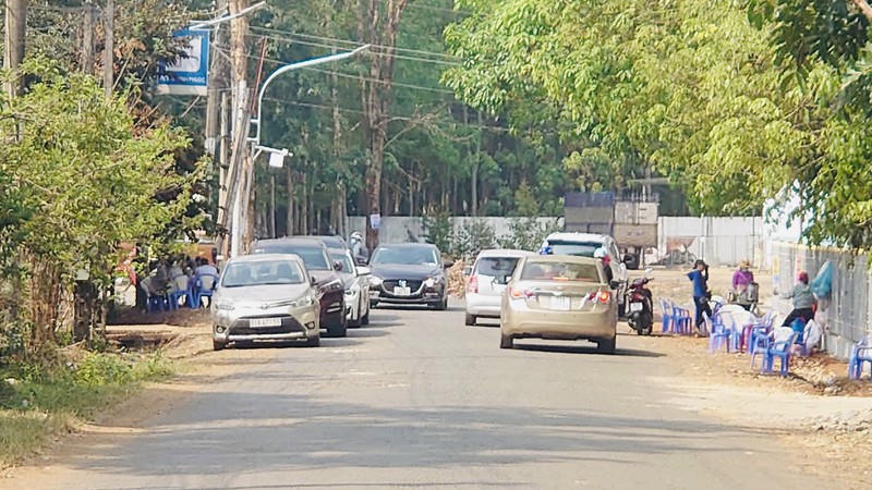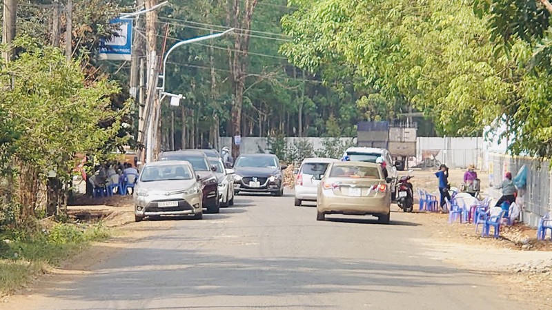 Hàng trăm xe ô tô biển số các tỉnh Bình Phước, TP.HCM, Đồng Nai, Bình Dương, Hà Nội… nối đuôi nhau, đi lại tấp nập khắp các tuyến đường. Cùng với đó là đội "cò đất" đi xe máy tụm lại thành từng nhóm bên đường, treo biển bán đất hoặc chạy dọc trên đường, hễ có xe dừng lại là tiếp cận chào bán và dẫn khách đi xem đất ngay lập tức. Cảnh môi giới chào mời, dẫn khách, cọc đất diễn ra tấp nập từ sáng đến đêm tại khu vực này.