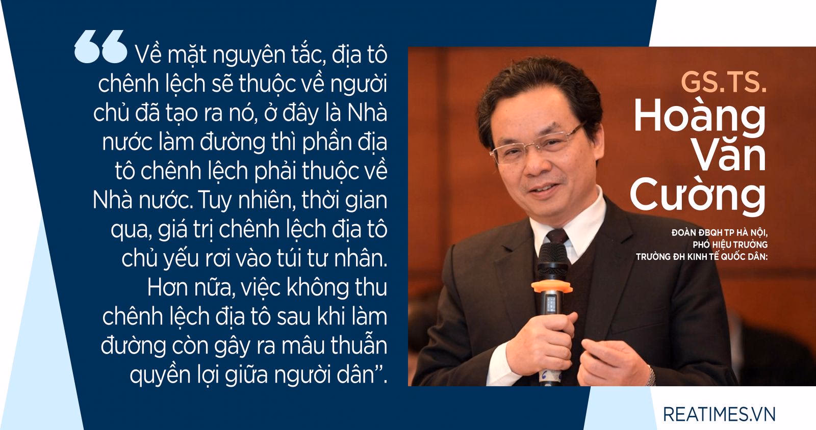 Đây là nguồn lực quan trọng cho quá trình tích luỹ, phát triển ban đầu và là nguồn thu quan trọng trong cân đối ngân sách của nhiều nước trên thế giới. Thực tế tại Việt Nam cho thấy, nguồn lực từ giá trị gia tăng từ đất chưa có công cụ điều tiết, phân phối nên không chỉ làm thất thu ngân sách mà còn gây ra bất bình đẳng về lợi ích giữa những người dân cùng chịu tác động của các dự án đầu tư, giữa người dân có đất bị thu hồi với nhà đầu tư. Bài viết dưới đây, Reatimes ghi lại chia sẻ của GS.TS. Hoàng Văn Cường, Đoàn ĐBQH TP. Hà Nội, Phó Hiệu trưởng Trường Đại học Kinh tế Quốc dân.