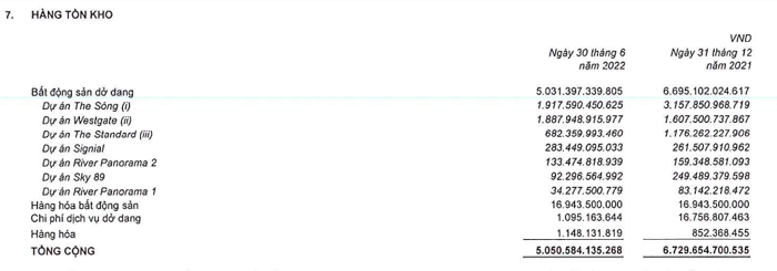 Giá trị tồn kho tại hai dự án The Sóng và The Standard mà Ban lãnh đạo đã đề cập cũng ghi nhận giảm lần lượt 40% và 42% so với đầu năm. Đây cũng là hai trong ba dự án từng có tồn kho nghìn tỷ tại thời điểm đầu năm của An Gia, bên cạnh dự án Westgate.