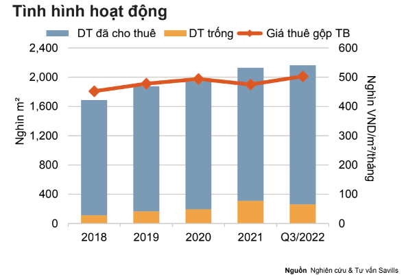 Bà Trang Bùi, Tổng giám đốc Cushman & Wakefield đánh giá, nhu cầu thuê căn hộ và mặt bằng bán lẻ đang quay trở lại quỹ đạo tăng trưởng như thời điểm trước dịch. Trong quý III/2022, tỷ lệ lấp đầy toàn thị trường đạt 93% trên tổng nguồn cung tích lũy của các trung tâm thương mại, bách hóa tổng hợp và khối đế thương mại là 1 triệu m2 mặt sàn, giá thuê trung bình đạt 48,3 USD/m2/tháng (tương đương 1,1 triệu đồng/m2/tháng), tăng 5,6% so với cùng kỳ năm trước.
