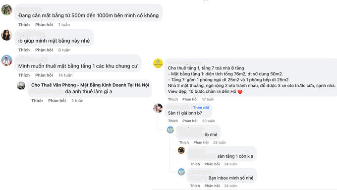 Bên dưới phần bình luận, có rất nhiều khách hàng quan tâm và để lại nhiều câu hỏi, mong muốn thuê mặt bằng kinh doanh. Có những người còn than thở rằng, sau dịch Covid-19 mọi thứ đều chững lại, kinh doanh cũng vậy. Thế nhưng giá mặt bằng vẫn tăng cao.