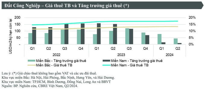 Nhằm thu hút các nhà đầu tư lớn trong lĩnh vực công nghệ cao, thành phố đang gấp rút giải quyết khó khăn trong việc thiếu quỹ đất công nghiệp lớn. Tại các tỉnh phía Nam, giá thuê đất công nghiệp trong quý II cũng không có nhiều biến động. Trong đó, TP. Hồ Chí Minh hiện là nơi có giá thuê đất công nghiệp cao nhất, với giá thuê ổn định ở mức 230 USD/m²/kỳ hạn và tỷ lệ lấp đầy đạt 90%, theo sau là Long An có giá thuê từ 140-260 USD/m²/kỳ hạn, Đồng Nai và Bình Dương giá thuê lần lượt là 140-200 USD/m²/kỳ hạn và 135-200 USD/m²/kỳ hạn.