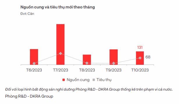 Báo cáo của DKRA đã chỉ ra, sức cầu thị trường khiêm tốn và lượng tiêu thụ còn hạn chế. So với cùng kỳ năm ngoái, tỷ lệ nguồn cung nhà phố/shophouse nghỉ dưỡng mới tháng 10 giảm 75%, tiêu thụ mới giảm 83%. Tuy nhiên, nếu so với tháng 9 năm nay thì 2 chỉ số này đều có sự gia tăng.