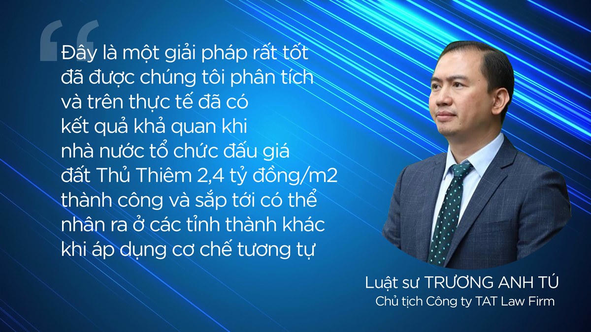 Để khắc phục tình trạng tăng giá quá cao ở những khu đất vàng tại các tỉnh thành trong cả nước, đồng thời đảm bảo hài hòa quyền lợi của nhà đầu tư, nhà nước và người dân, theo Luật sư Trương Anh Tú - Chủ tịch Công ty TAT Law firm (Đoàn Luật sư TP.Hà Nội) cần sửa đổi Luật Đất đai theo hướng cơ bản là doanh nghiệp được tiếp cận đất đai của nhà nước theo đúng giá thị trường thông qua hình thức bán đấu giá.