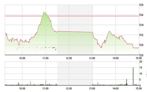 >>>Chứng khoán ngày 21/1: Vùng 530 có nhiều biến động TNNĐ- Đóng cửa phiên giao dịch ngày 20/1/2016, VN-Index giảm 6,33 điểm xuống 529,44 điểm. Tương tự, HNX-Index giảm 0,37 điểm xuống 73,93 điểm. |