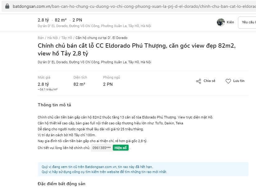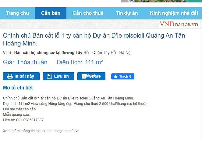 Cũng tại dự án này, một căn hộ được mô tả gồm 2 phòng ngủ, 2 phòng vệ sinh, có diện tích 76m2 cũng được rao bán chỉ còn 3 tỷ đồng đã “bao phí”, cắt lỗ 1 tỷ đồng so với giá gốc từ chủ đầu tư. Thông tin rao bán căn hộ này đã xuất hiện khá lâu, tuy nhiên việc bán nhà cũng không dễ dàng.
