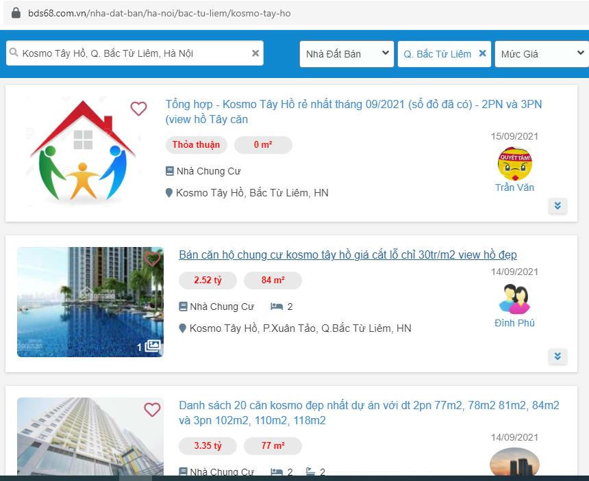Hay tại dự án Kosmo Tây Hồ, nhiều căn hộ được rao bán cắt lỗ 500 – 700 triệu đồng so với giá gốc do chủ đầu tư đưa ra. Được biết, trước đó các căn hộ tại đây được rao bán với giá từ 35 - 40 triệu đồng/m2, tuy nhiên hiện tại một số căn đang được rao bán cắt lỗ với mức giá chỉ 30 triệu đồng/m2.
