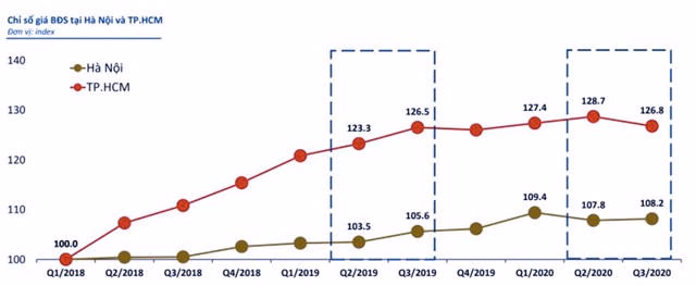 Dự báo trong 3 tháng cuối năm, ông Nguyễn Quốc Anh, Phó Tổng giám đốc Batdongsan.com.vn nhận định, giá bất động sản Hà Nội sẽ đạt mức tăng khoảng 1,4% trong khi TP.HCM giảm khoảng 2%.