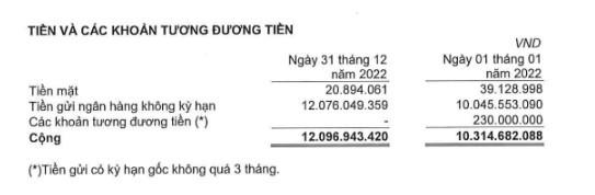 Tuy nhiên, doanh thu hoạt động tài chính của VRC tăng mạnh so với năm trước, cụ thể năm 2021 doanh thu tài chính chỉ đem về gần 27 triệu đồng trong khi đó năm 2022 đem về hơn 4,7 tỷ đồng. Tại thời điểm 31/12/2022, VRC ghi nhận lượng tiền gửi ngân hàng không kỳ hạn hơn 12 tỷ đồng và gần 21 triệu đồng tiền mặt.