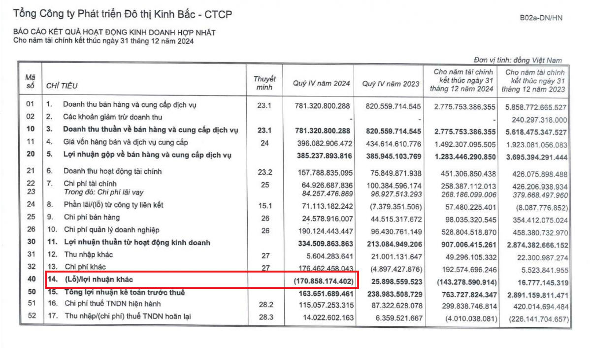 Kết quả, doanh nghiệp đạt lãi thuần 334 tỷ đồng trong quý cuối năm 2024, cao hơn mức 213 tỷ cùng kỳ. Tuy nhiên, công ty lại ghi nhận khoản lỗ khác hơn 170 tỷ đồng, trong khi cùng kỳ là lãi 25 tỷ, khiến lãi sau thuế chỉ còn 62 tỷ đồng, giảm 61% so với cùng kỳ. Công ty giải thích rằng việc lãi giảm do chưa kịp ghi nhận doanh thu từ các hợp đồng đã ký, dù đã có thu nhập lớn từ các công ty liên kết.