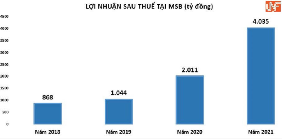 Năm 2021, Ngân hàng TMCP Hàng hải Việt Nam (HOSE: MSB) báo lãi trước thuế gấp đôi năm trước, thu về hơn 5.088 tỷ đồng, nhờ tăng trưởng cả nguồn thu chính và thu từ dịch vụ. Kết quả này giúp MSB vượt 56% kế hoạch đề ra cho cả năm 2021.