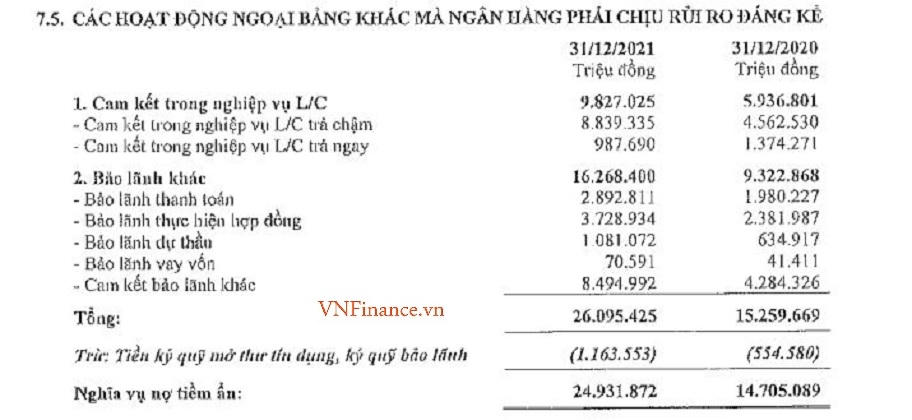 Tuy nhiên, con số đáng chú ý nhất chính là khoản nợ ngoại bảng tiềm ẩn của MSB bất ngờ nhảy vọt.