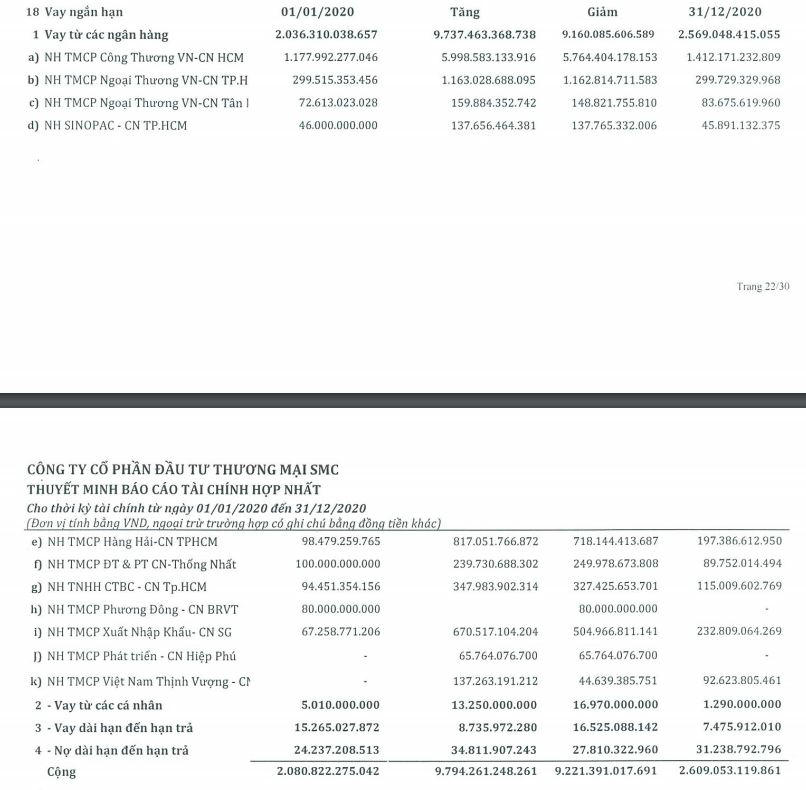 Tương tự như VIS, tại SMC tính đến 31/12/2020 nợ vay tài chính tăng 25% so với đầu năm, lên mức 2.609 tỷ đồng; Ngoài ra, dòng tiền thuần từ hoạt động kinh doanh tại SMC trong năm 2020 âm gần 212 tỷ đồng, trong khi năm 2019 dương 463 tỷ đồng.