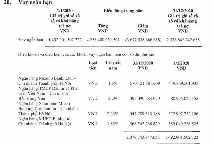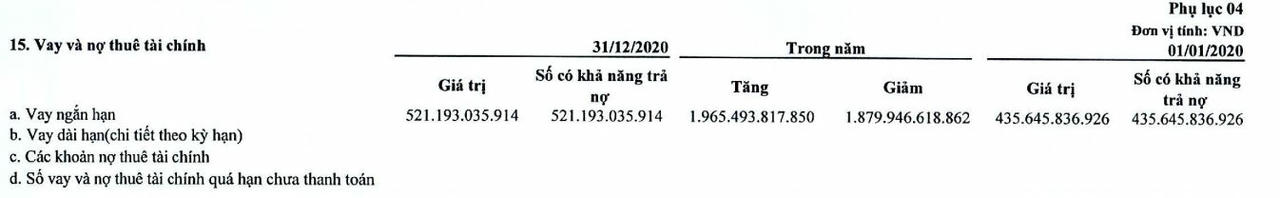 Trong BCTC quý 4/2020 tại KMT, mục vay và nợ thuê tài chính chỉ đề cập tới khoản vay ngắn hạn tăng 20% so với đầu năm, lên mức 521 tỷ đồng.