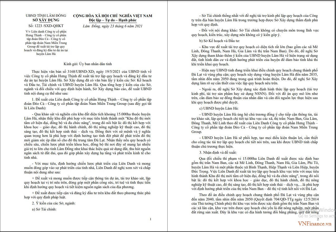 Theo thông tin từ Sở Xây dựng tỉnh Lâm Đồng, mới đây Liên danh CTCP Tập đoàn Hưng Thịnh – CTCP Tập đoàn Đèo Cả - CTCP Tập đoàn Nam Miền Trung Group (Liên danh Hưng Thịnh – Đèo Cả - Nam Miền Trung) đã có văn bản đề xuất tài trợ lập quy hoạch và đăng ký đầu tư dự án tại huyện Lâm Hà.