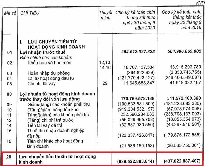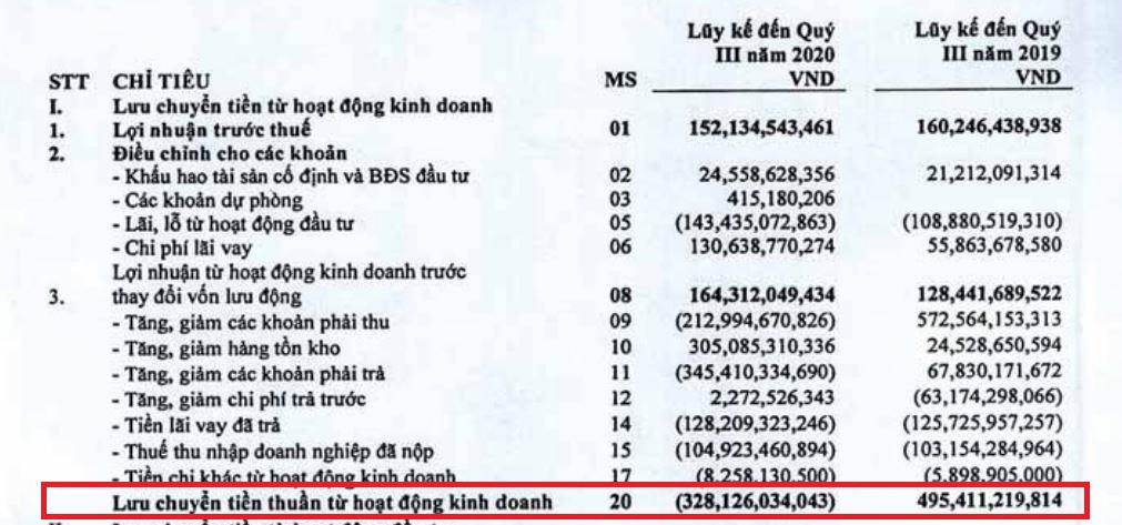 Tại Công ty cổ phần DRH Holdings (mã chứng khoán: DRH) ghi nhận biến động dòng tiền kinh doanh trong 9 tháng đầu năm 2020.