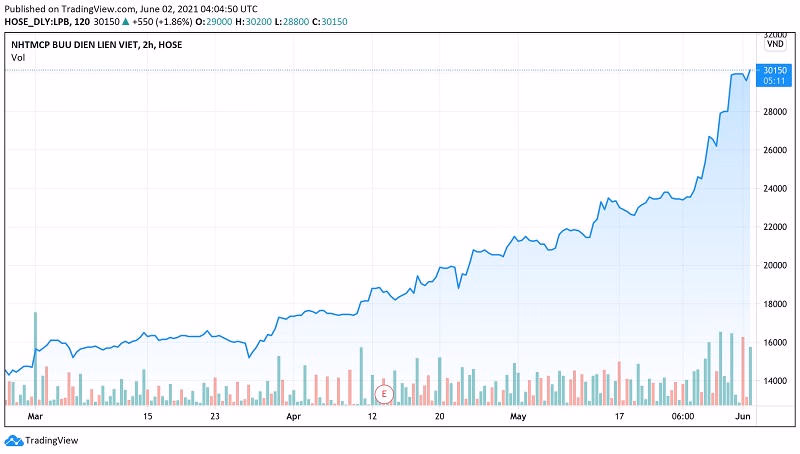 Tạm kết phiên sáng 2/6, cổ phiếu LPB có giá 30.300 đồng/cp, tăng 139% từ đầu năm. Ước tính, ông Thụy sẽ cần chi hơn 985 tỷ đồng để mua lượng cổ phiếu đăng ký.