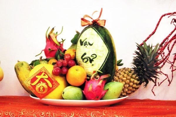 Riêng cặp dưa hấu hãy đặt chúng ở hai bên mâm sau khi đã hoàn thành mâm quả cúng ngày Tết.