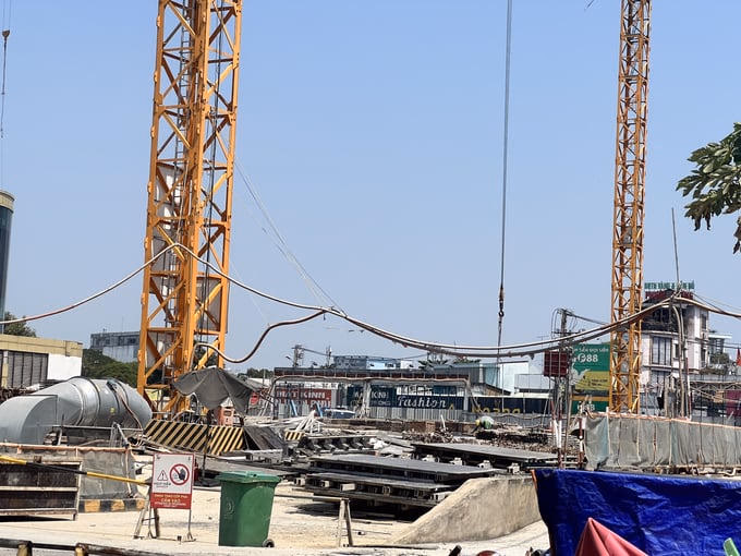 Ghi nhận ngày 19/03, của PV Tài chính doanh nghiệp cho thấy dự án vẫn chỉ đang trong quá trình hoàn thiện phần tầng hầm. Trên công trường dù ở giờ cao điểm làm việc nhưng chỉ lác đác xuất hiện vài công nhân.