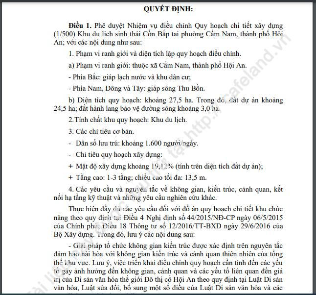 Cụ thể, vào ngày 26/12/2008, Công ty TNHH Du lịch sinh thái Cồn Bắp được thành lập để đầu tư dự án Khu du lịch sinh thái Cồn Bắp (tên thương mại: Hoian d’Or) theo công văn số 4812/UBND-VX của UBND tỉnh Quảng Nam.