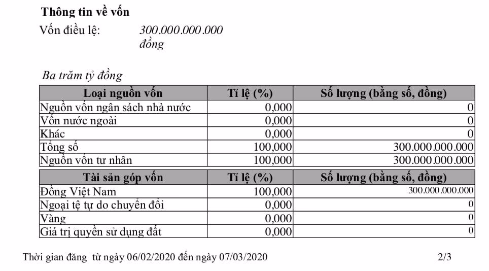 Tiếp đó, vào ngày 6/2/2020, công ty nâng vốn điều lệ từ hơn 50,77 tỷ đồng lên 300 tỷ đồng. Cổ đông góp vốn không được đề cập. Sau gần 5 tháng, công ty tiếp tục tăng vốn lên 330 tỷ đồng.