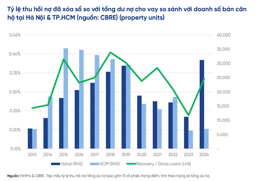 Đến năm 2024, tỷ lệ thu hồi nợ bắt đầu hồi phục trở lại, tăng lên gần 0,3%, diễn ra cùng lúc với sự hồi phục nhẹ của thị trường Hà Nội.
