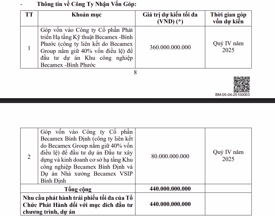 Bên cạnh đó, doanh nghiệp còn dự kiến sử dụng số tiền thu được cho mục đích thực hiện chương trình, dự án đầu tư của công ty, cụ thể là góp vốn đầu tư vào các công ty liên kết để tăng vốn điều lệ nhằm thực hiện đầu tư các dự án do các công ty này làm chủ đầu tư.