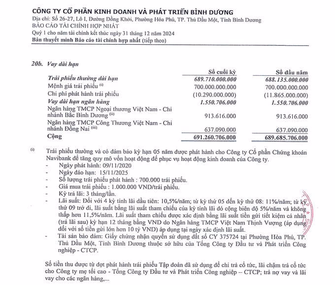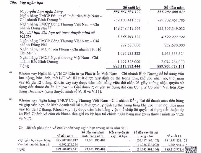 Theo đó, khoản vay này được đảm bảo bằng tài sản của Công ty Becamex TDC (tài sản cố định hữu hình, vô hình, cổ phiếu, trái phiếu, tiền gửi và các tài sản khác và có thể là tài sản của bên thứ 3).