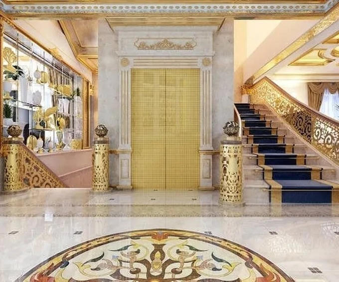 Bên trong, căn biệt thự là sự kết hợp tinh tế giữa phong cách cổ điển và hiện đại. Mọi chi tiết, từ sàn nhà, tường, trần đến những đường nét trang trí, đều được chạm khắc tỉ mỉ và sang trọng. Không gian nội thất cầu kỳ, tạo nên sự tinh tế và đẳng cấp. Căn biệt thự cũng được bố trí nhiều khu vực tiếp khách, với tranh chân dung của bà Hằng và hoa tươi được trưng bày khắp nơi.