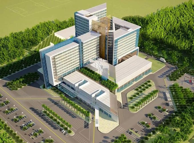 Dự án Bệnh viện Đa khoa khu vực Củ Chi có 13 tầng, 1 tầng hầm, tổng diện tích sàn là 80.980m2.