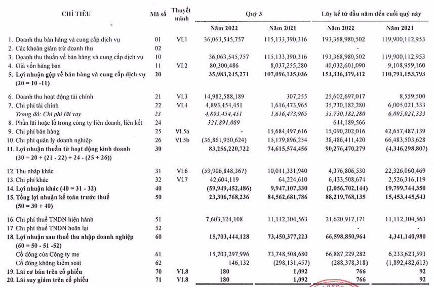 Lượng tiền mặt của công ty đến cuối quý 3 chỉ ở mức gần 2,7 tỷ đồng và hàng tồn kho giảm từ mức hơn 51 tỷ hòi đầu năm về còn 362 triệu đồng.