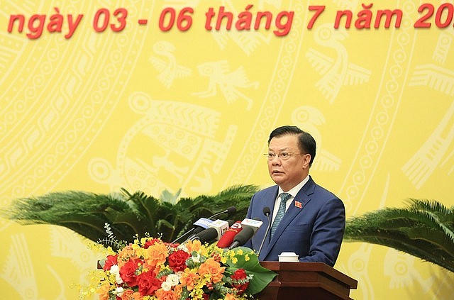 Bí thư Thành uỷ Hà Nội Đinh Tiến Dũng phát biểu tại kỳ họp 12, HĐND TP. Hà Nội - Ảnh: VGP/GH |
