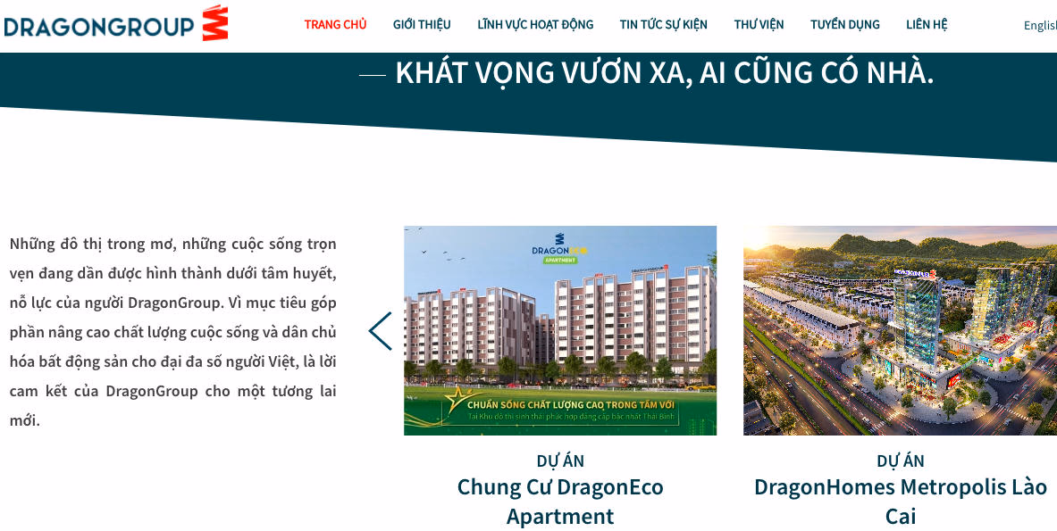 Tại TP. Thái Bình, Dragon Group được biết đến là chủ đầu tư của nhiều dự án, trong đó có dự án Nhà ở xã hội Dragon Group tại xã Vũ Phúc với diện tích 11,3ha, gồm 4 tòa nhà cao 9 tầng với 498 căn hộ. Tổng diện tích sàn xây dựng 41.059m2, tổng mức đầu tư dự án vào khoảng 330 tỷ đồng.