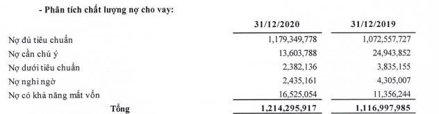 Đến cuối năm 2020, tổng số dư nợ xấu nội bảng của BIDV là gần 21.342 tỷ đồng, tăng thêm gần 1.850 tỷ. Trong đó, nợ có khả năng mất vốn (nợ nhóm 5) là hơn 16.525 tỷ đồng, tăng 5.170 tỷ so với cuối năm 2019 và tăng hơn 2.200 tỷ đồng so với thời điểm 30/9/2020. Kết quả làm cho tỷ lệ nợ xấu trên dư nợ vay chỉ tăng nhẹ lên 1,76%.
