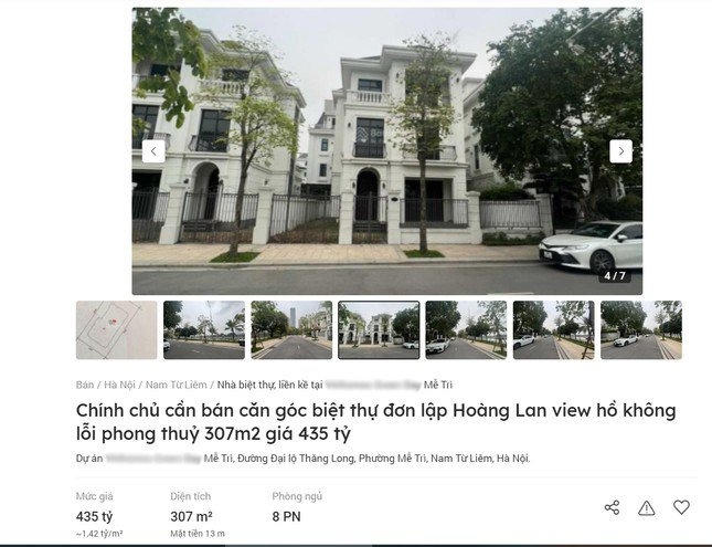 Một căn biệt thự khác có diện tích 500m2 tại cùng khu đô thị cũng đang được rao bán trên Batdongsan.com, với giá 470 tỷ đồng, tương đương 940 triệu đồng/m2.