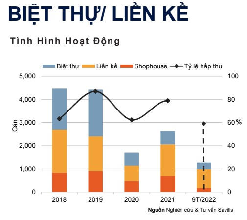 Theo báo cáo Quý III/2022 của Savills về phân khúc biệt thự/liền kề, nguồn cung mới gồm 489 căn đến từ ba dự án mới gia nhập thị trường và từ giai đoạn sau của ba dự án đang hiện hữu, tăng 235% theo quý và 117% theo năm. Nguồn cung sơ cấp thị trường đạt 1.180 căn từ 15 dự án, tăng 19% theo quý và 8% theo năm.