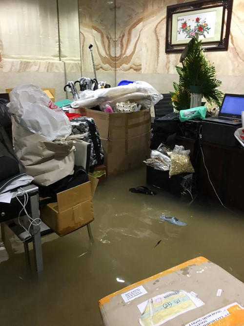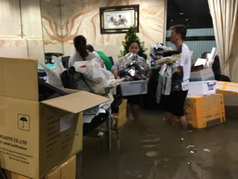 Nước dâng cao khiến nhiều đồ đạc ngập trong biển nước