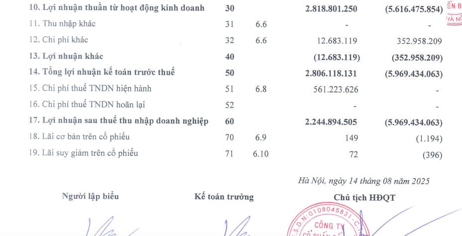 Trong kỳ, lợi nhuận thuần từ hoạt động kinh doanh của công ty đạt hơn 2,8 tỷ đồng, trong khi cùng kỳ năm ngoái âm hơn 5,6 tỷ đồng.