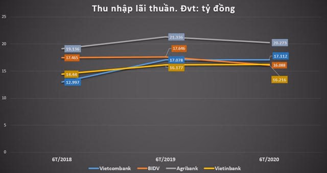 Việc cắt giảm lãi suất cho vay khiến thu nhập lãi thuần của Big4 ngân hàng trong 6 tháng đầu năm 2020 đều có phần đi ngang so với cùng kỳ năm trước dù vẫn ghi nhận dư nợ cho vay khách hàng tăng trưởng.