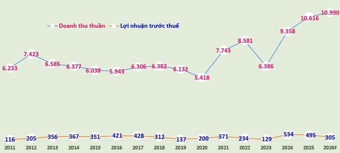 Năm 2026: Kế hoạch tổng doanh thu 10.990 tỷ đồng, tăng 2%