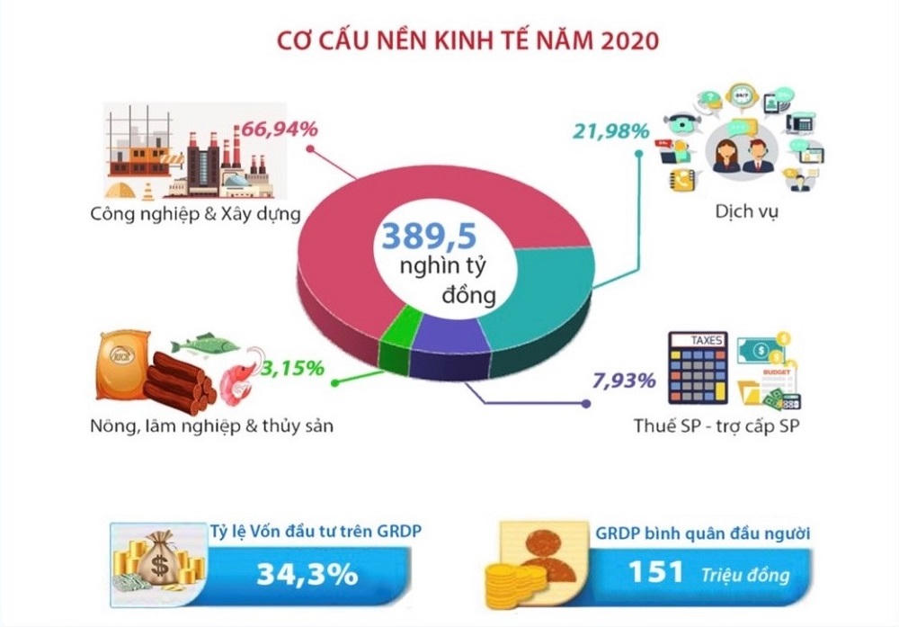 Tổng thu ngân sách nhà nước bằng 98% cùng kỳ năm 2019, trong đó thu nội địa bằng 99%, thu từ lĩnh vực sản xuất, nhập khẩu bằng 96%. Tạo việc làm mới cho 45.300 lao động; thu nhập bình quân đầu người 151 triệu đồng/năm.