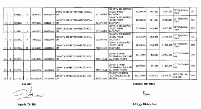 Theo Chi cục Thuế khu vực Lộc Ninh - Bù Đốp, thông qua đối chiếu doanh thu, thuế giá trị gia tăng đầu ra kê khai trên tờ khai thuế và trên hóa đơn theo Nghị định số 123/2020/NĐ-CP và tra cứu dữ liệu trên hệ thống hóa đơn điện tử https://hddtcbt.gdt.gov.vn/ nhận thấy Công ty TNHH Trung Hưng Hoa Lư phát sinh hóa đơn mua vào bán ra, có sự sai lệch, cụ thể: