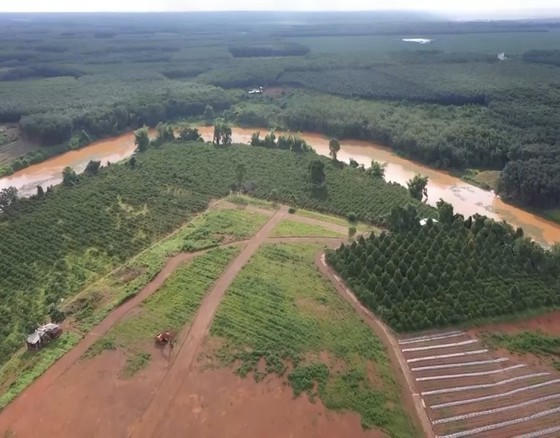 Kiểm tra thực tế, khu đất cách quốc lộ 14 khoảng 3km đã được phân lô bám theo đường bê tông xóm có mặt đường rộng 3m và bám theo đường quy hoạch lộ giới 26m, dọc bờ sông Bé thuộc hồ thủy lợi Phước Hòa. Mỗi lô có diện tích từ 1.000-1.500m2. Ngoài ra, khu đất còn có các tuyến đường nội bộ đang được triển khai thi công.