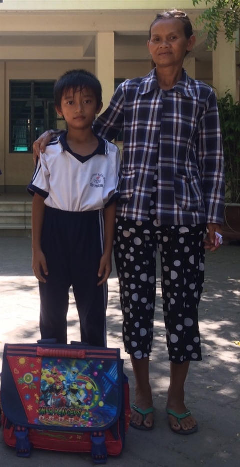 | Bà Tư đưa cháu ngoại tới trường nhập học sau khi được PV hỗ trợ |