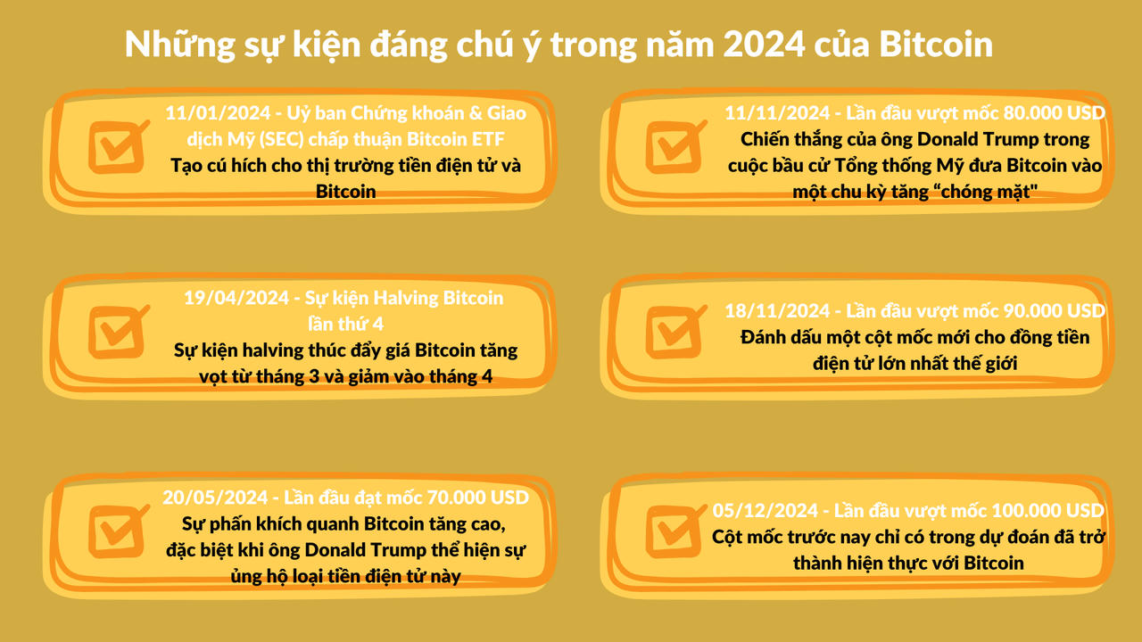 Bitcoin, biểu tượng của kỷ nguyên tiền điện tử, đã trải qua hành trình đầy biến động từ những ngày đầu bị hoài nghi đến khi trở thành tài sản số được săn đón toàn cầu. Năm 2024 đánh dấu cột mốc lịch sử khi giá Bitcoin lần đầu tiên chạm ngưỡng 100.000 USD, khẳng định vị thế của nó không chỉ là một công nghệ đột phá mà còn là biểu tượng của sự chuyển mình trong nền kinh tế số.