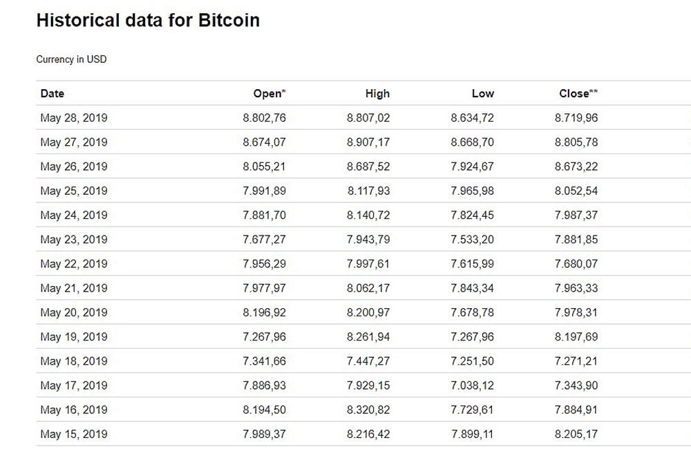 Đây là một thực tế nếu chúng ta xem qua các số liệu của coinmaketcap.com trong khoảng một tháng trở lại đây ở thời điểm đóng cửa. Nhìn chung, giá đồng Bitcoin vẫn tăng mạnh nếu tính từ đầu năm 2019 tới nay