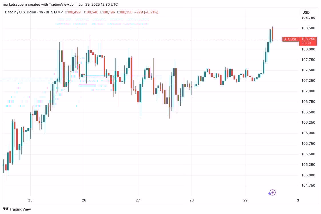 Trong báo cáo cuối tháng 6/2025, Ed Campbell cho biết mức kháng cự đáng chú ý tiếp theo của Bitcoin là 114.000 USD. Trong phiên giao dịch ngày 30/6, giá Bitcoin ghi nhận ở mức khoảng 107.800 USD, tức chỉ cần tăng thêm khoảng 6% để vượt qua ngưỡng này.