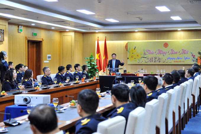 Ngày 3/2, Bộ trưởng Bộ Tài chính Nguyễn Văn Thắng đến thăm, xông đất và chúc Tết toàn thể cán bộ công chức, người lao động Tổng cục Thuế.