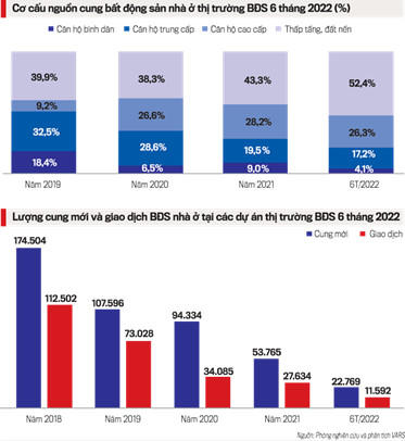 Bộ xây dựng cho biết, 6 tháng đầu năm 2022, thị trường chưa có sự cải thiện về nguồn cung nhà ở thương mại, lượng cung nhà ở thương mại rất hạn chế với khoảng 12.000 căn. Trong khi đó, tổng lượng giao dịch căn hộ chung cư, nhà ở riêng lẻ, nhất là đất nền tăng mạnh (ước tính khoảng 70.000 giao dịch thành công). Điều này cho thấy nhu cầu về nhà ở và đầu tư bất động sản của người dân vẫn rất lớn.