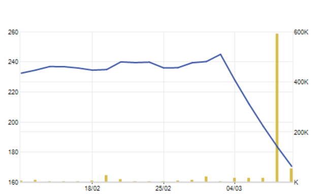 Giá YEG đang lao dốc trong những phiên đầu tháng 3